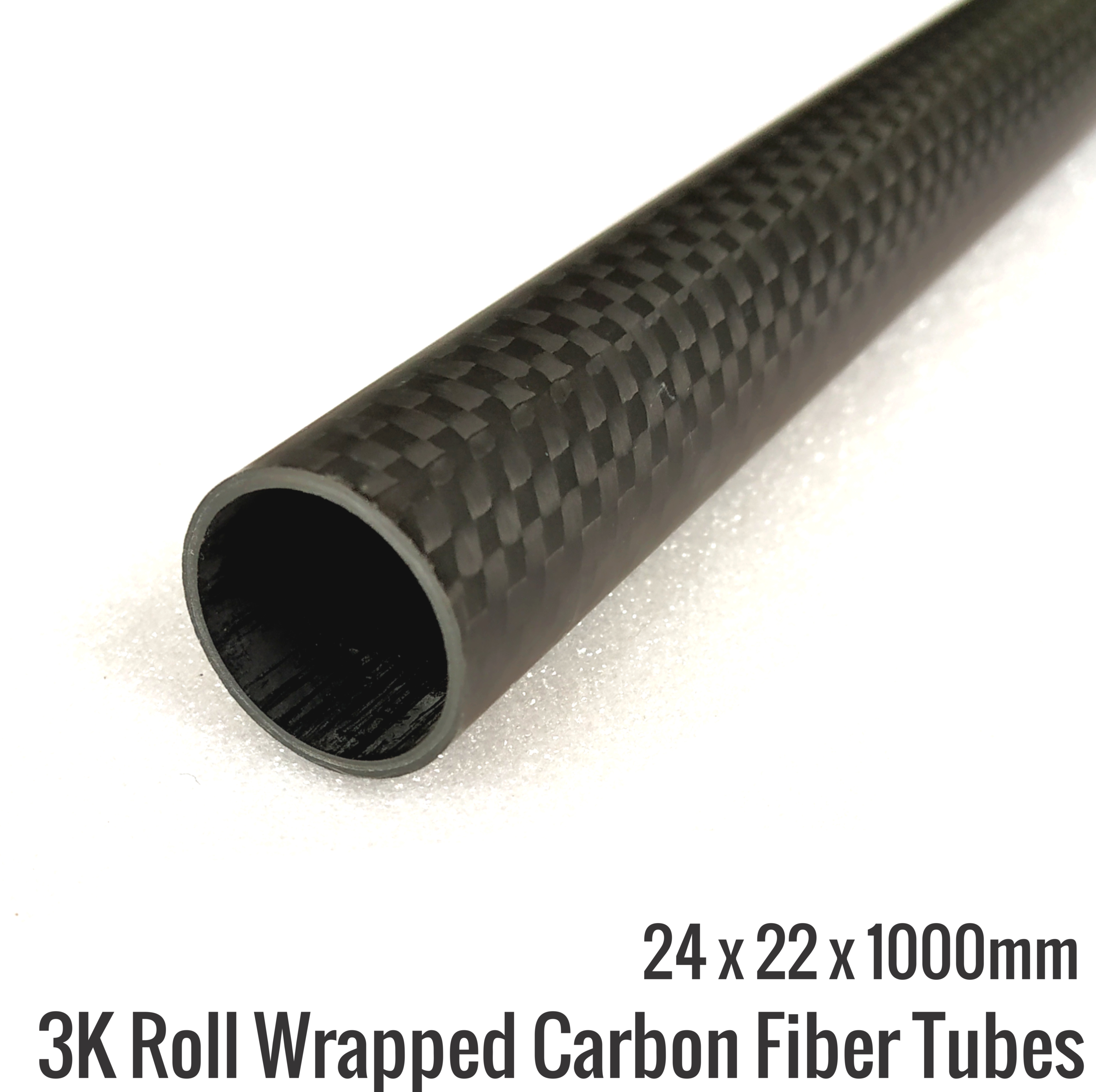24x22x1000mm 3K CF Tube Carbon Fiber / Fibre Tube 3K Roll Wrapped