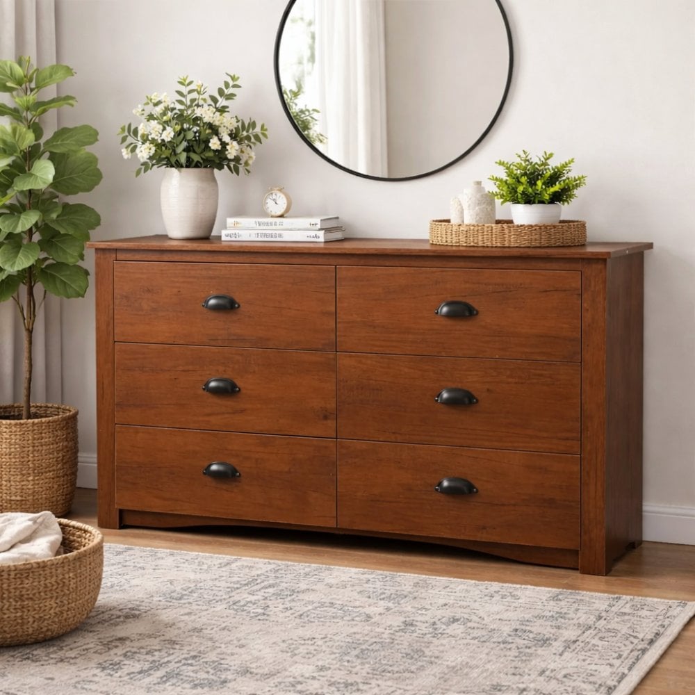 Bragg Essential Fabric Chest of Drawers (6 Drawer), Oak & Black