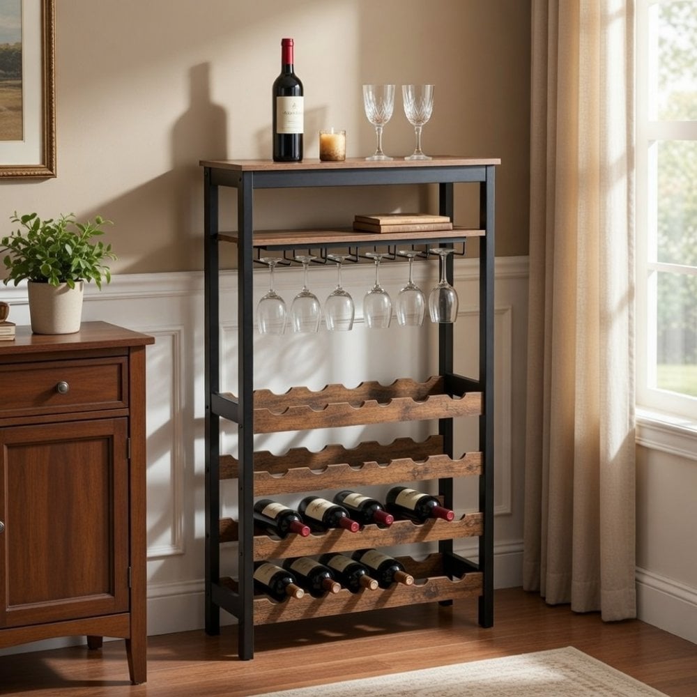 Bragg Sicily Wine Rack with Glass Storage and Shelves, 24 Bottles